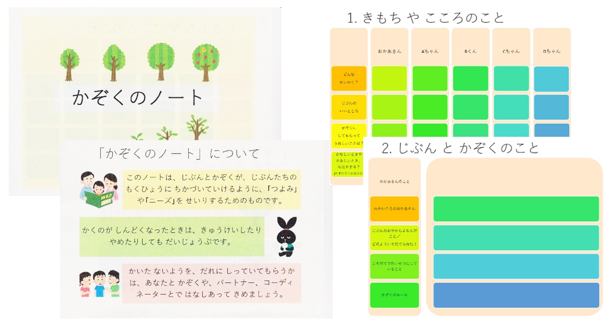 しかしその時、いきなり「わたしは何者か」と考えるのは難しいので、記入して使える「家族のノート」を作成しました。