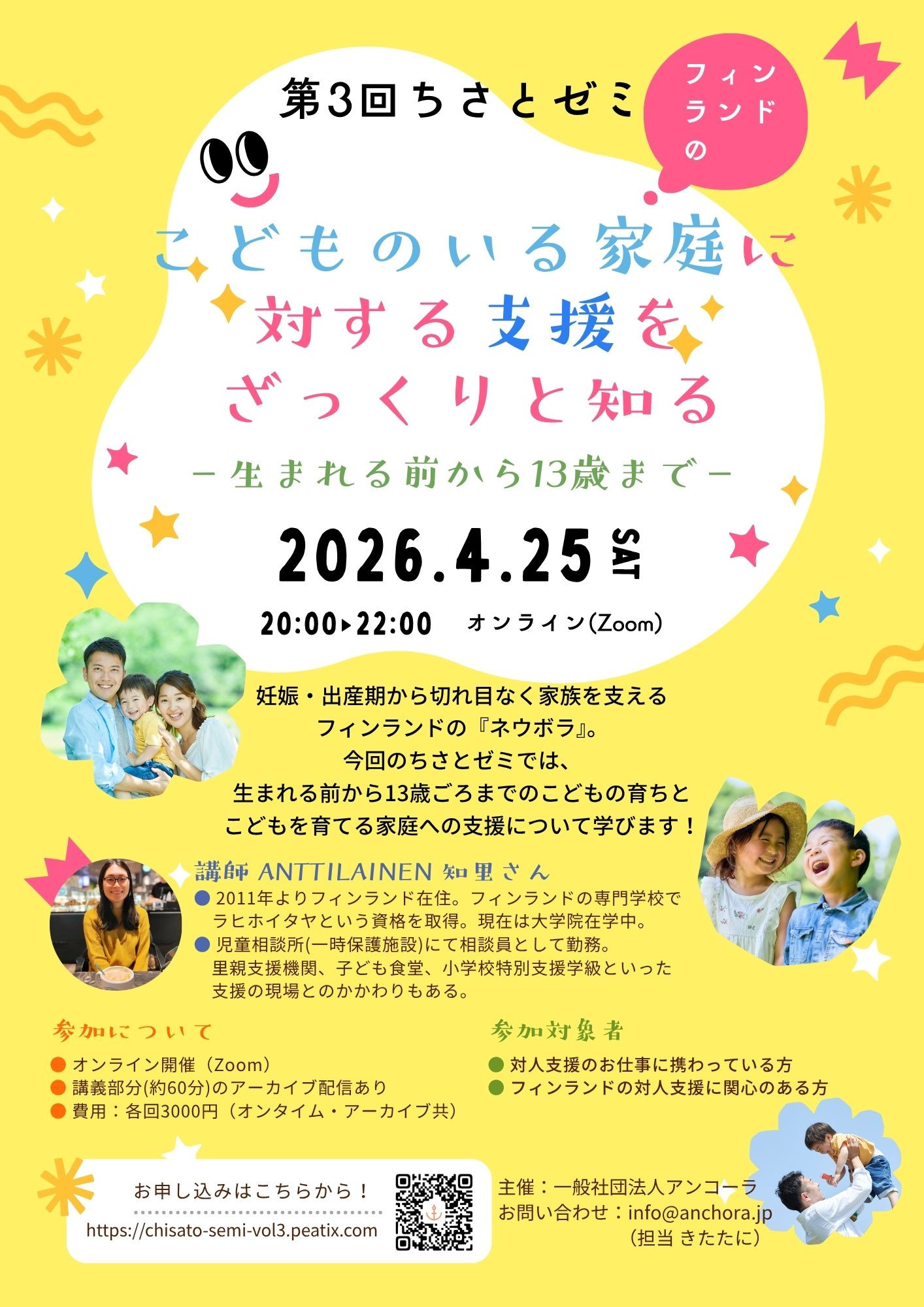第3回ちさとゼミ「こどものいる家庭に対する支援をざっくりと知る」を開催します!